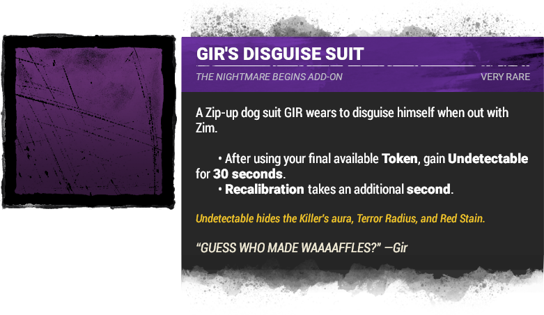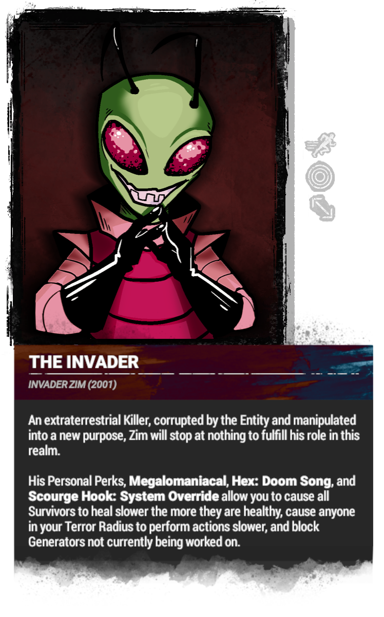 All references to Zim, Invader Zim, and all related trademarks and logos are property of Nickelodeon. Dead by Daylight and all related trademarks and logos are property of Behaviour Interactive Inc.